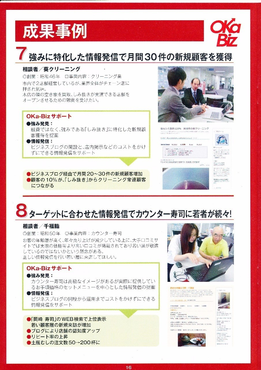 2016.06.07 岡崎市と岡崎商工会議所が運営する岡崎ビジネスサポートセンターOKa-Bizの開設2年目の記録として作られた活動報告書に弊社スタッフ、鈴木と梅村がITアドバイザーとして掲載されています。